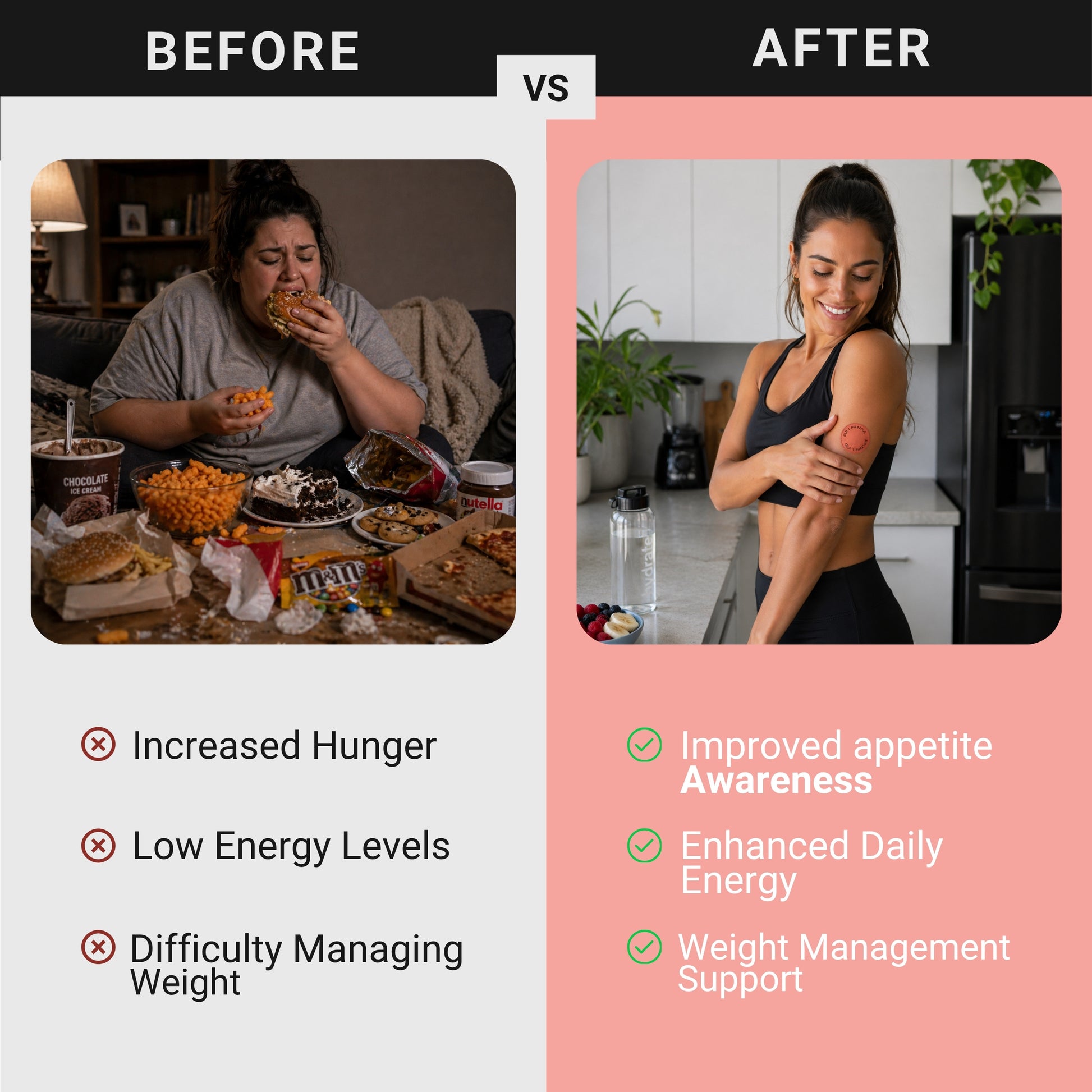 Our patches release ingredients gradually, keeping your energy and appetite in balance — no spikes, no crashes.